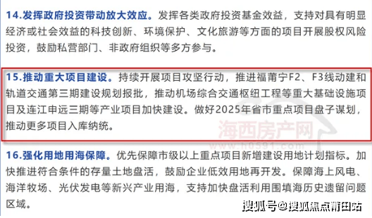 其中,持续扩大有效需求方面,明确推动重大项目建设。持续开展项目攻坚行动,推进福莆宁F2、F3线动建和轨道交通第三期建设规划报批,推动机场综合交通枢纽工程等重大基础设施项目及连江申远三期等产业项目加快建设。