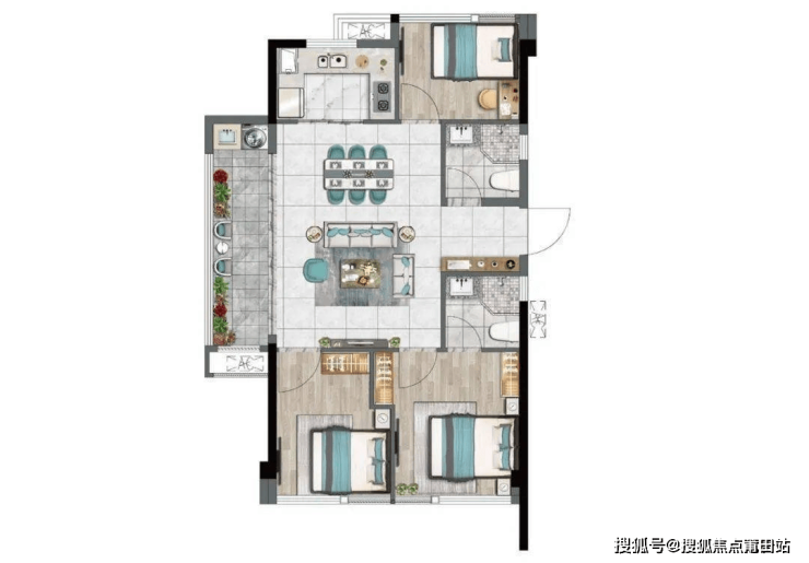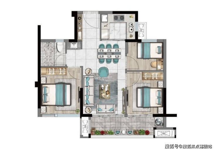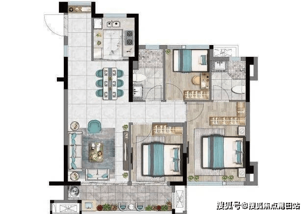 方正通透;约5.3米宽幕瞰景阳台;联通式客厅;套房式主卧,专属盥洗室、衣帽间。