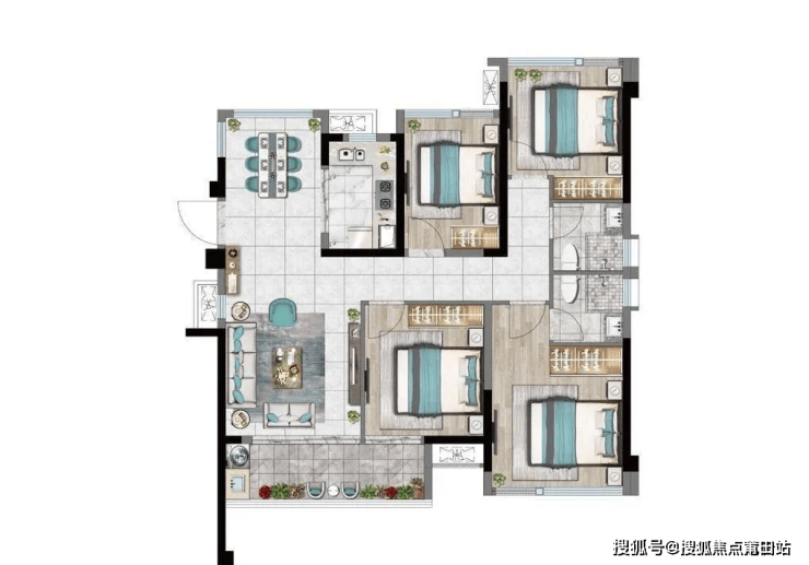 方正格局,动静分明,高空间利用率;大尺度套房式主卧,享独立全明盥洗室、衣帽间。