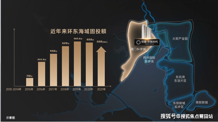 项目所处的环东海域板块,链接3大行政区,十四五规划带黄金交汇点。2020年环东海域占535亿,一天不止一个亿,累计超2000亿的投入,超过厦门其他新城总投资和。一个个重量级配套在环东海域新城的开建,标志着环东新城将作为市级中心的规划定位。