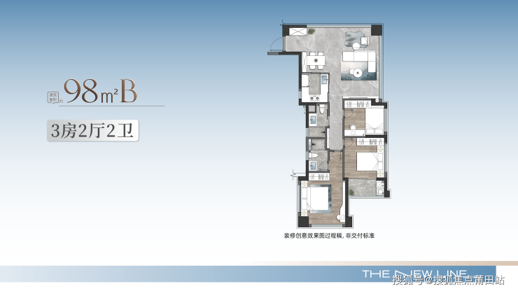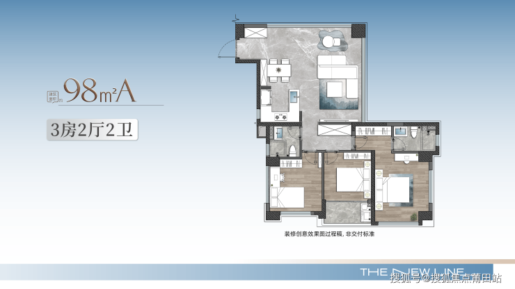 98-113㎡改善户型:270°环幕玻璃、双面采光,客厅面宽媲美岛内140㎡产品。