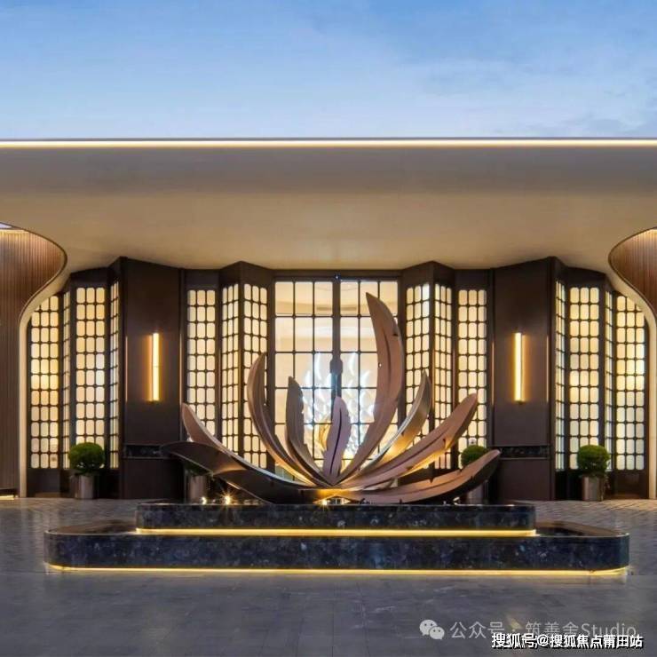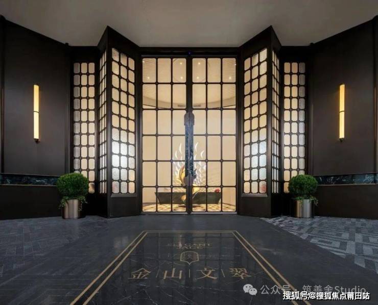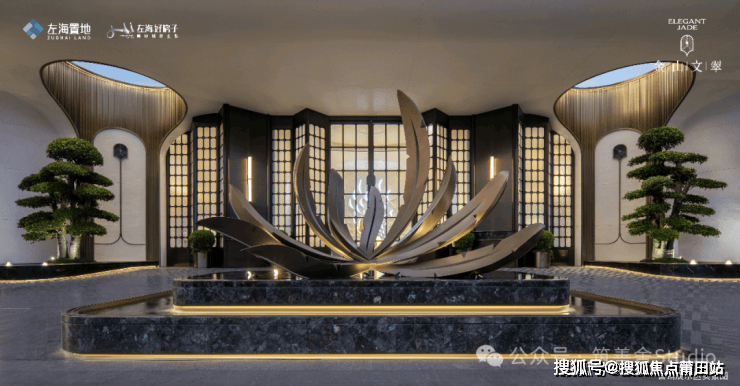 迎宾水景中的“百鸟朝凤”纯铜雕塑,以马达加斯加蓝翡翠奢石为底座,细节之处如门把手的凤翎纹绿奢石镶嵌,无不彰显其用心之深。