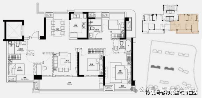 127㎡、150㎡B户型,如果喜欢朝南客厅,可把北向客厅+餐厅和南侧两次卧对调。户型设计及示意图考虑的是楼栋在地块北侧和最南侧,其中北侧有江景,南侧南端无景观,可以向北看中庭景观。