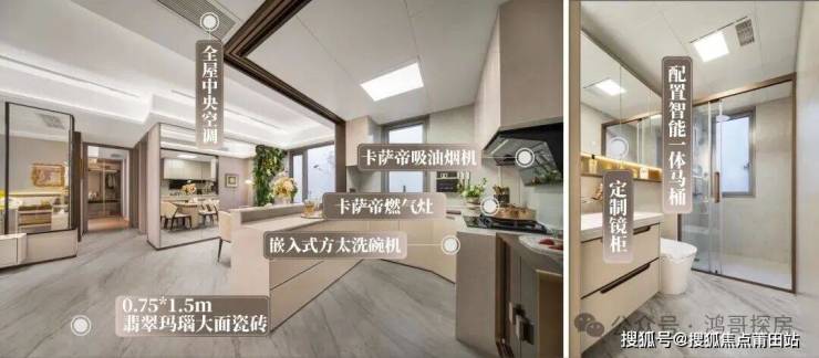 精选摩恩台盆龙头、卡萨帝油烟机、方太洗碗机等大品牌或同档位品牌家具厨电,定制钢木门、翡翠玛瑙大面瓷砖、全屋中央空调等,满足理想居家生活的期待。