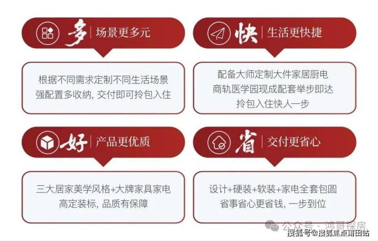 从空间的外在呈现到内在功能,从生活的物质需求到精神体验,精心雕琢“场景、生活、品质、成本”四大人居理念,深入生活的每一处细微角落,带来新一代理想人居解决方案。