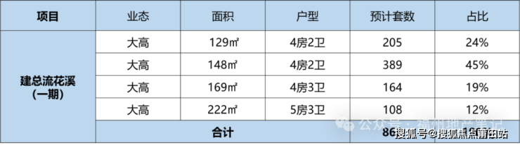 排布逻辑上:129-149㎡户型沿外侧和南侧临路排布,169㎡沿西侧流花溪排布,222㎡中庭景观排布,排布逻辑合理。