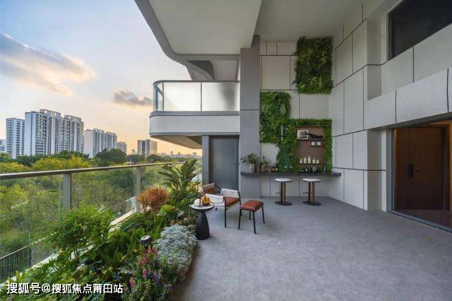项目设计团队在设计之初出于对室内光照、建筑环境之间的关系的考量,采用“庭院转换”和“楼层转换”的设计,将露台设计为奇偶交错,使得所有的私家庭院都有两个自然层高,打造约6米的挑高天空院落,加大非传统住宅阳台,空中庭院坐拥270°景观视野,在带来更广阔视野的基础上,将花园融入生活,构筑建筑的生态内涵。