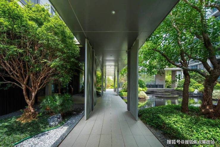 此外,南北与东西两条景观轴串联起五大社区花园,春季有紫薇绽放,秋季有桂花飘香,四季流转间皆是风景。更难得的是,内部园景还与外部的白湖亭河道公园有机串联,形成“内外双园”生态体系,让自然成为生活的日常底色。