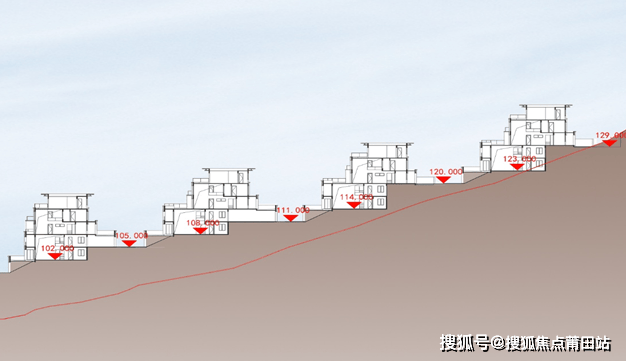 ◎依山而建,同享优质采光与视野:依山而建,楼栋间的高差+超宽楼间距,避免传统叠拼别墅中,下叠采光通风较差的问题。同时前无遮挡,享受良好的观景视野