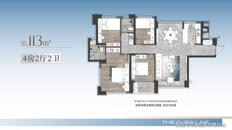 98-113㎡改善户型:270°环幕玻璃、双面采光,客厅面宽媲美岛内140㎡产品。
