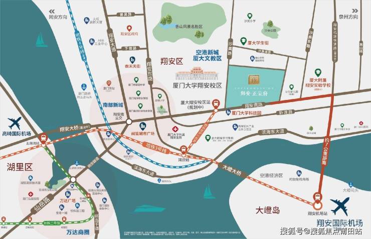 立体交通与生态:公交网络密集(734路、751路等),地铁3号线支线(建设中) 未来将直连翔安机场;周边3公里分布16个公园,最近仅687米。