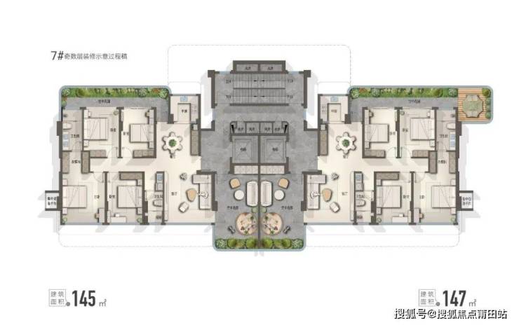 此外,奇数层的东侧产品为147㎡,比西侧产品多了2㎡。