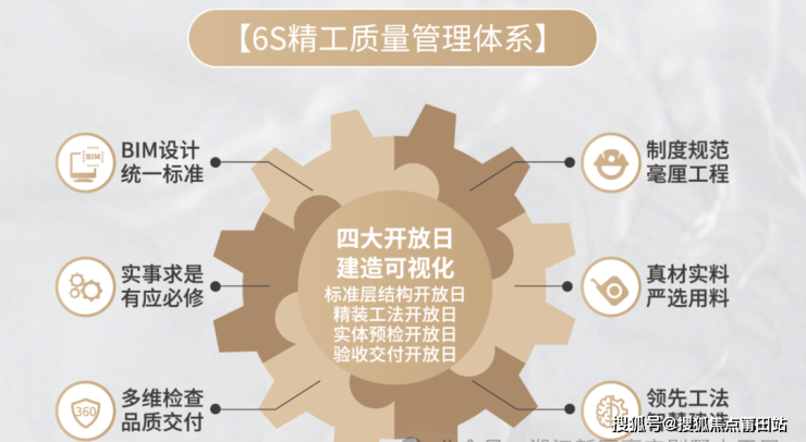 独创专有体系与标准--6S精工质量管理体系,从选材、建造、防水、精装等八大类系统性施工严格把关,对超1000个细节反复打磨,力求筑就坚固安全且美观实用之居所。旗下多个项目曾获国家建筑界最高奖项——"鲁班奖”、"詹天佑土木工程大奖”,铸就行业品质典范。
