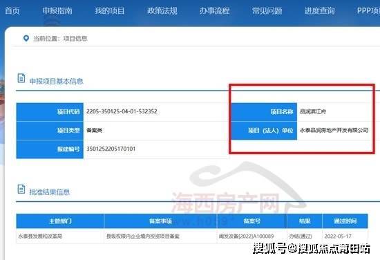 福建省投资项目在线审批监管平台显示,“品润滨江府”于2022年5月17日取得县级权限内企业境内投资项目备案 ,备案号为闽发改备[2022]A100089,主管部门为永泰县发展和改革局,显示结果为办结(通过)。该项目(法人)单位为永泰品润房地产开发有限公司。