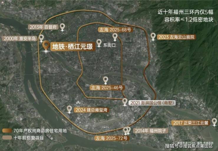 据东街1號统计,近十年,福州三环内容积率≤1.2的低密地块仅5幅,其中闽江沿线的只有地铁栖江元璟一个项目。另外,这两年四区成交的可售宅地中,近半项目容积率都超过2.5。