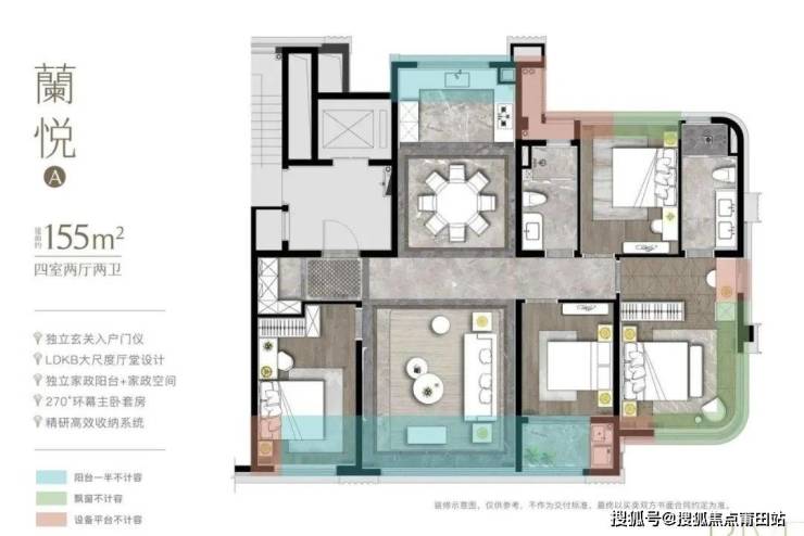 LDK一体化客餐厅以灵动的设计,让不同生活场景自如转换,演绎不同家庭成员的生活协奏曲,营造家人其乐融融的情感互动。于次卧设计南向家政阳台,符合福州居住习惯,又为生活装入更多优雅。