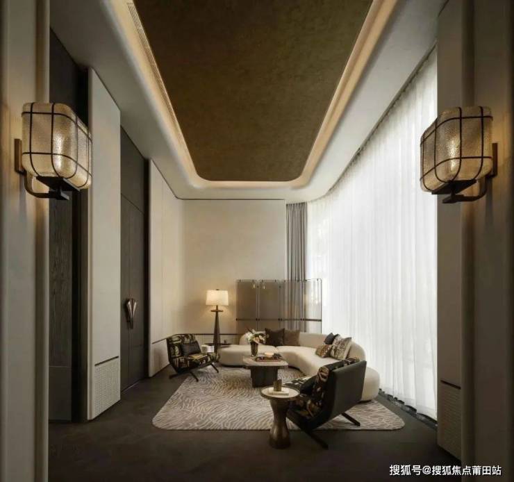 会所地下入口以酒店化标准设计,光厅顶面运用繁复的工艺,打造出如海浪般柔美的曲线造型。增强仪式感的同时,更象征着福州作为海滨城市的独特魅力。