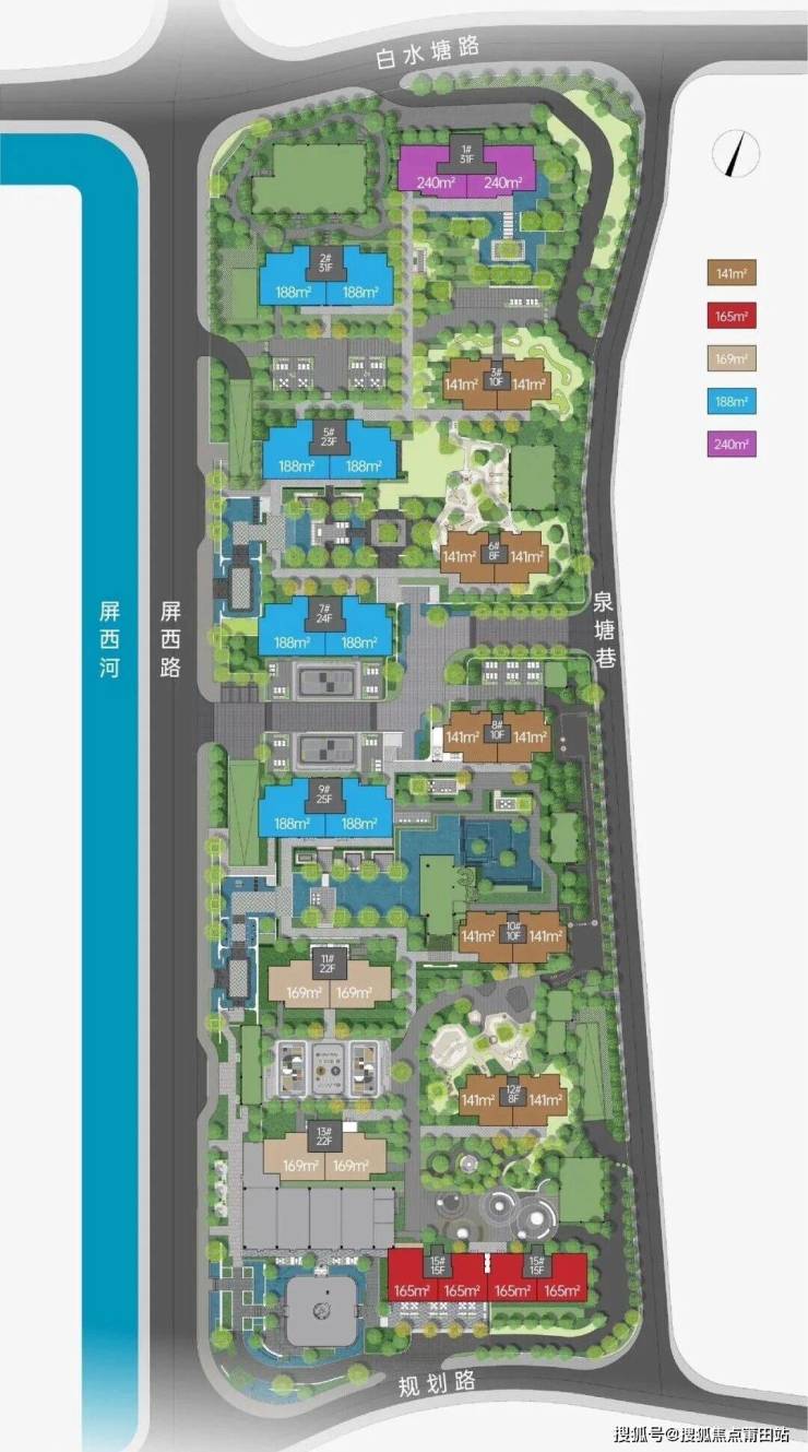 屏湖公馆(精装)主打141–240㎡大户型,装标高达1.2万元/㎡,采用德国唯宝卫浴、方太厨电等一线品牌,并引入“六恒科技系统”恒温恒湿恒氧。精装房均价约4.6万/㎡,总价600万起,适合追求拎包入住、注重社区圈层与品质的买家。