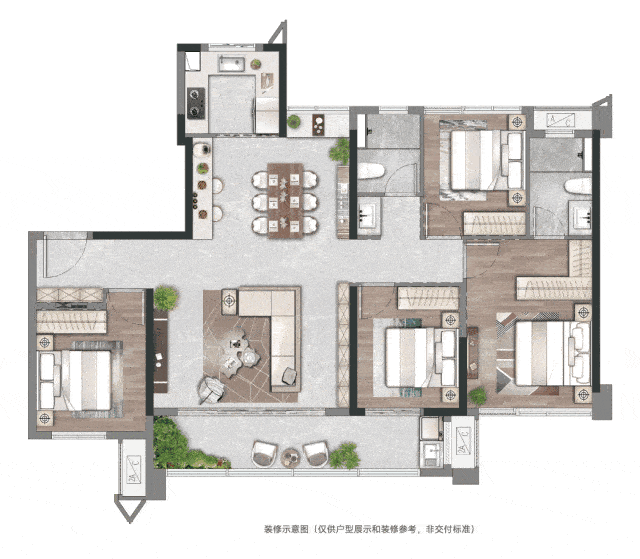 建筑面积约143㎡户型装修布置参考示意图