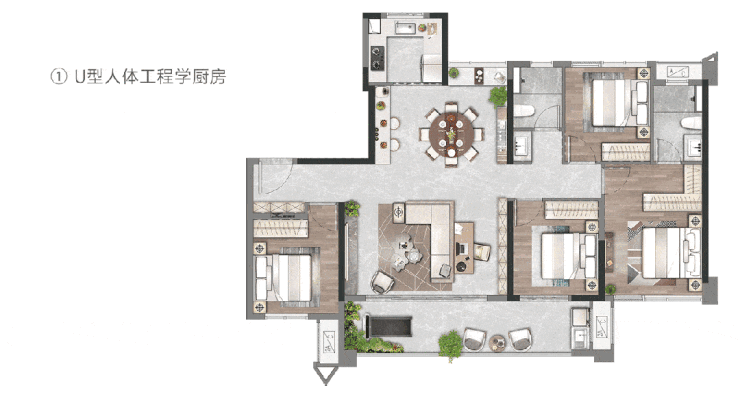 兰溪云悦深入客户这一需求出发,攻克技术上的难题,剔除传统户型中存在于餐客厅中的剪力墙,形成约55㎡的阔绰厅堂,将华丽的迎宾体系、全能的宴请体系、行政式会客体系等多重功能巧妙融合布局,无论是家庭聚会还是亲友生日会,都能轻松容纳。