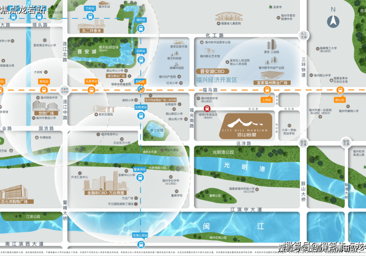 三远片区位于晋安东区,是福州市近期启动的连片旧屋区改造重点项目。片区交通配套成熟,北侧是地铁2号线上洋站,第三轮地铁8号线拟从片区内部穿过并设置三远站。项目南侧是光明港及光明港公园,具有良好的面河景观,周边生活配套有宜家商业综合体、格致中学鼓山校区、鼓山苑小学等。