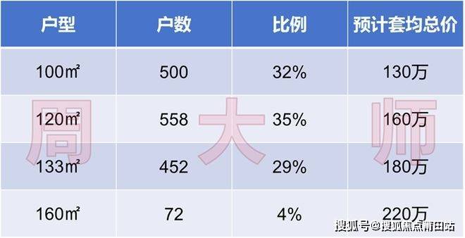 各户型配比如下: