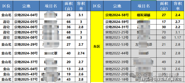 反观东区,新规地块仅3幅,面积合计仅74亩——不到金山的七分之一。