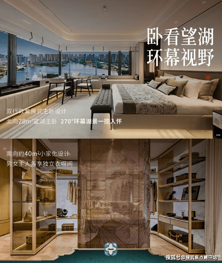 三套卧设计,南向约40㎡主卧小家化设计,独立衣帽间;北向约28㎡看湖次主卧,带270°环幕湖景视野;全屋超70㎡窗户面积相当于一个小户型面积,超72%窗墙比,市面水平仅25-35%!