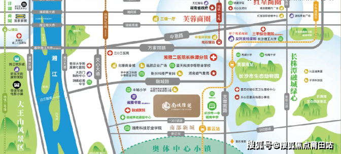 交通配套:项目拥有 “五横、四纵” 的立体交通网络,“五横” 指东西向的中意路、万家丽路、融城路、Y337 道路、新正街,“四纵” 指南北向的湘江大道南延线、天心大道、芙蓉南路和新韶山路。此外,周边还有城市公共交通,有多条公交线路途经,如公交 27 路、134 路、125 路、212 路等,往北直线 1.5 公里有长株潭轻轨芙蓉南站。