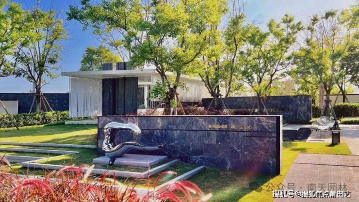 雕塑与条石草阶相结合,与景观元素相互映衬,层次分明,创造出自然和谐的场景。