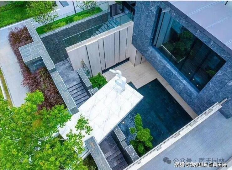 走进私家花园入口,映入眼帘的是超大的草坪,270°围绕式花园庭院,视线的尽头是开阔的景观。别墅外立面的选材采用了枫丹白露石+落地玻璃+金属铝板的组合,充分享受落地玻璃带来的全面屏景观视野,同时又能体验到系统门窗带来的顶级静谧感官。加上其特有的下沉式庭院设计,给人一种别具一格的感觉。