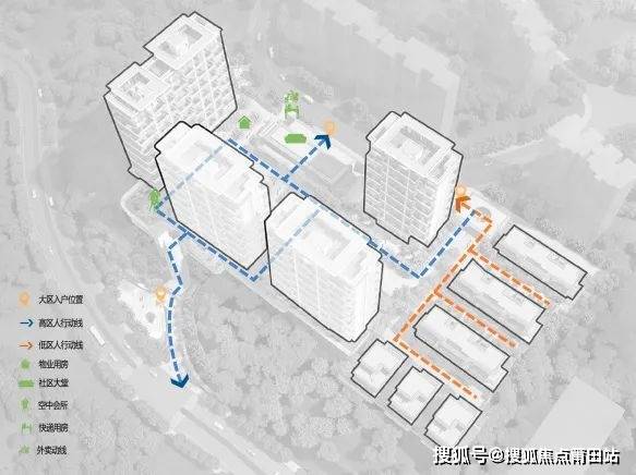 服务动线作为高品质社区不可缺失部分,主要包括垃圾清运、搬家动线、快递动线、外卖动线四大部分,旨在通过专门的服务入口、通道和设施,确保物业管理和服务人员的工作高效且不干扰业主的日常生活,提升了业主的居住体验,使整个高品质社区环境更加和谐、有序。