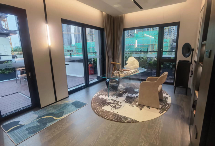 如果追求更奢侈的空间,华发院子还提供了独栋别院。比如建面约329㎡独栋,号称“两亩一栋”、“一院十园”的藏品级河景大宅,庭院面积高达1200㎡。
