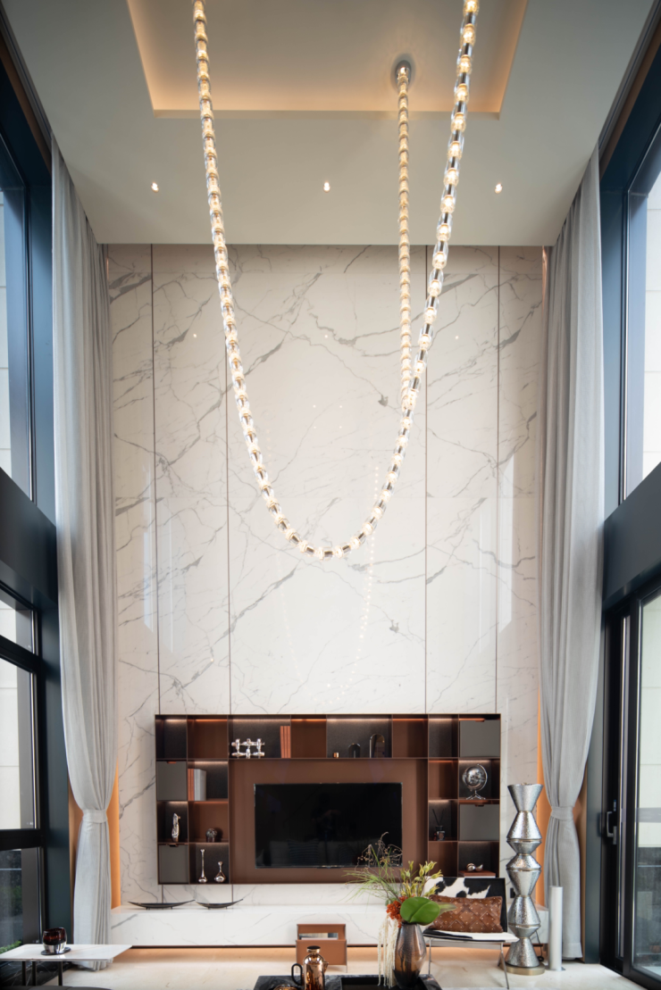 还有建面约209㎡独栋,前庭后院,会客厅就足有4.6米开间,约6.7米挑高,尽显奢华大方。