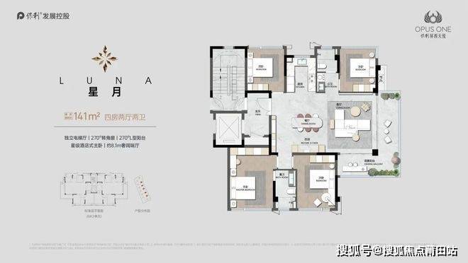 建面240㎡的五房户型作为项目的顶配产品,堪称“传世大宅”的典范。该户型拥有270°环幕视野,西湖、屏山的风光尽收眼底;客厅与餐厅形成超大公共活动空间,面积超过70㎡,足以容纳20人的家庭聚会或商务宴请;主卧套房面积达35㎡,配备独立书房、步入式衣帽间与豪华卫浴间,卫浴间采用双台盆设计并配备浴缸,尽显奢华质感;此外,户型还预留了独立的储物间与家政空间,细节处彰显人性化设计。