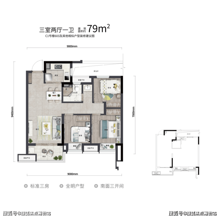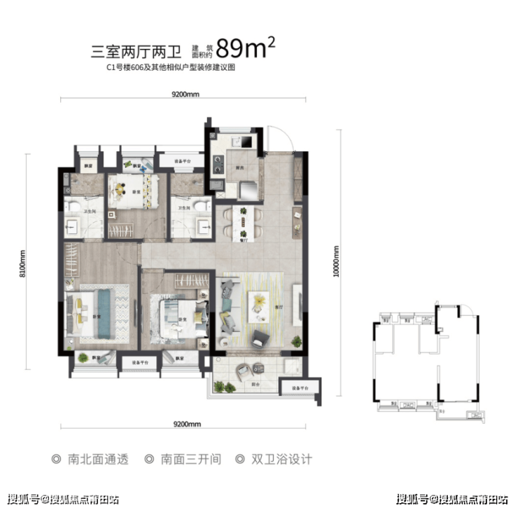 项目精研当代年轻人生活模式,主输出建筑面积约65-115㎡户型产品,打造完善收纳系统,预留大量柜体空间,部分户型设计壁龛。