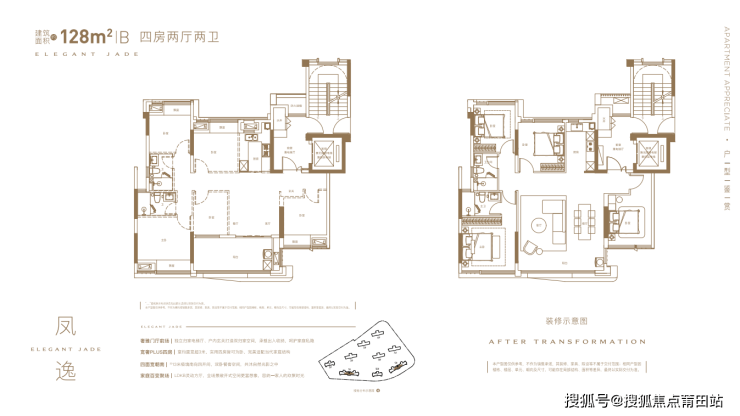 在产品设计上,项目主打128㎡和149㎡四房独梯户型,层高达3.05米,得房率在94%-99%之间。