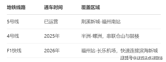 榕耀之城位于仓山南板块,是福州“东拓南进”的重要节点,未来将形成 F1滨海快线(2026年通车)、地铁4号线(2025年通车)、5号线(已运营)** 的三线交汇格局,成为福州南部的交通枢纽。