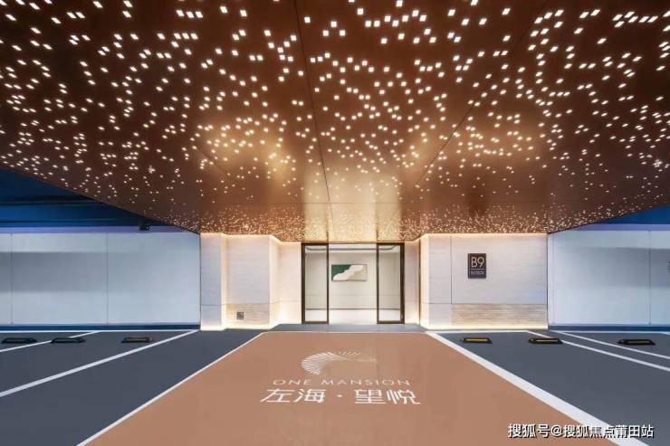 地下地库同频劳斯莱斯星空顶设计,以鎏金铝板铺陈,璀璨星光点缀,营造出“抬眸即星河”的梦幻感官。