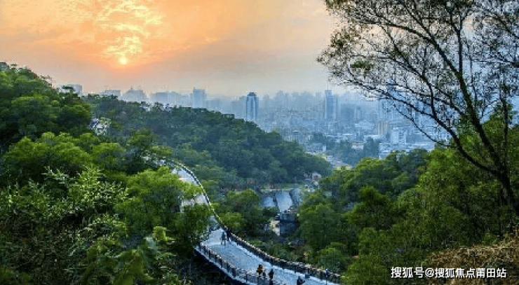 福州版中央公园,从北到南约2000亩的牛岗山公园、鹤林公园和晋安湖公园形成的公园带——直线距离约1.7km