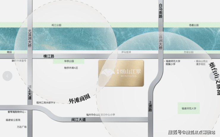 左海·烟山江翠占据着福州闽江沿岸的核心黄金地段。北临闽江,东接烟台山历史文化风貌区,西接融侨外滩顶豪圈层。