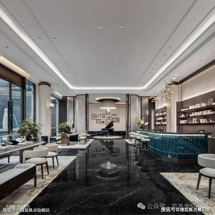 下沉式会所,地面铺设与售楼处一致的珍贵石材,以不变的品质,奠定艺术与生活交融的基石。随着琴键的轻敲,跳跃的音符与地面细腻的纹理共鸣,宛如黑白琴键间流淌的旋律,交织出生活的和谐乐章。