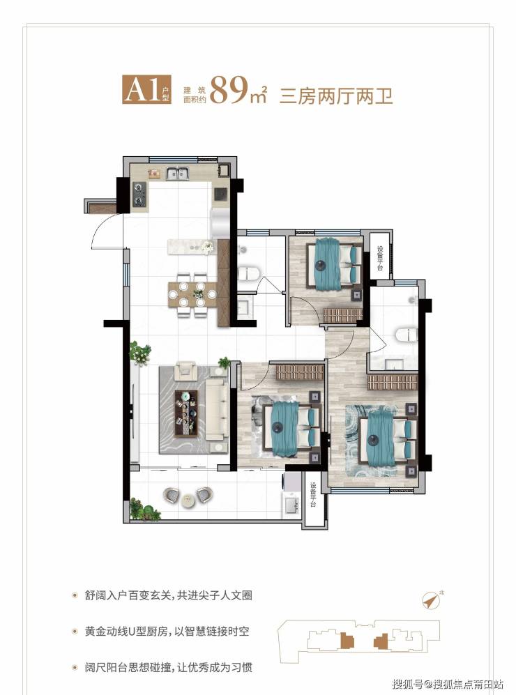 89㎡户型:经典三房两厅设计,部分版本宣称“可变三房”(实际交付为两房结构,需通过设备平台改造),满足多孩家庭需求;