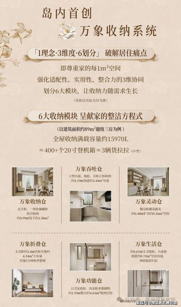 岛内首创的屋顶花园(1、2、6#楼栋配备)和万象收纳系统也是重要卖点。