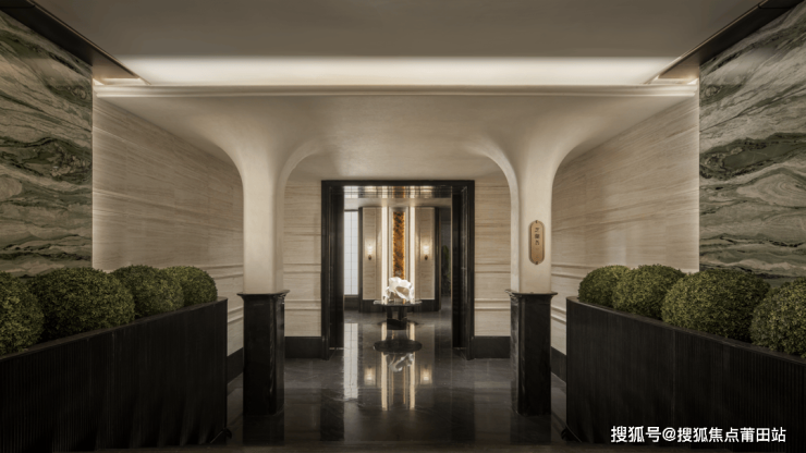 会所地下入口以酒店化标准设计,光厅顶面运用繁复的工艺,打造出如海浪般柔美的曲线造型。增强仪式感的同时,更象征着福州作为海滨城市的独特魅力。