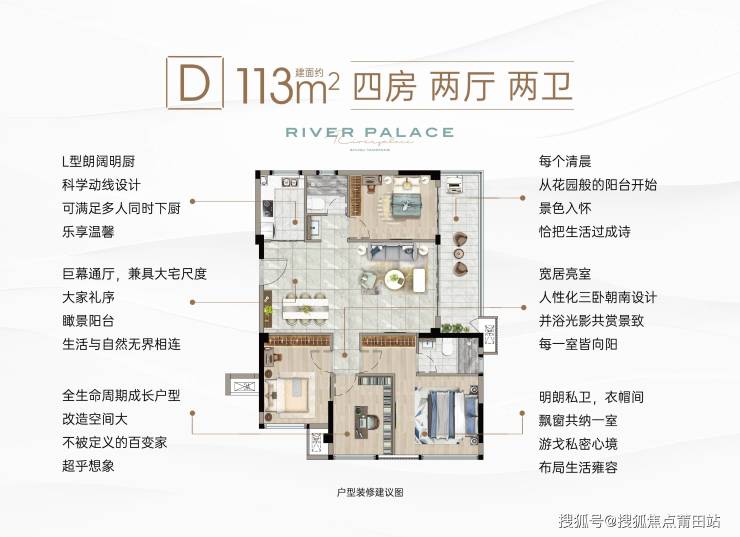 户型功能进化: 建面约80-113㎡主力户型,创新实现: