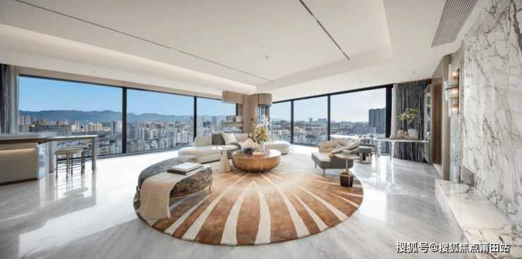 一幕窗景,半城闽都。建面约240㎡央景传世之作,建面约60㎡ 游艇式家族社交宽厅,270°环幕落地窗,取景古老城市的四季更迭,对望屏山镇海楼的厚重壮阔。