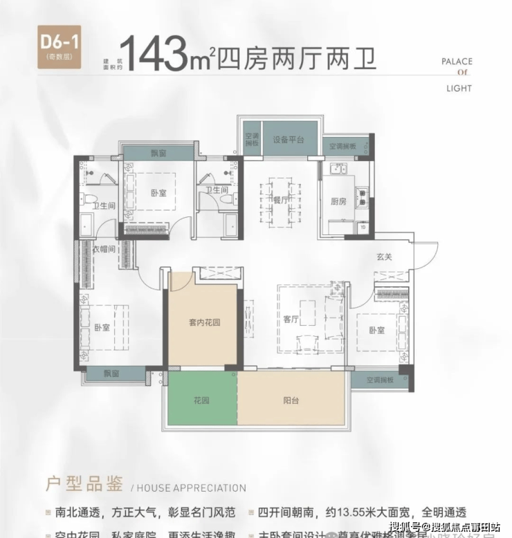层层独享私家花园,且南北错位布局,三面采光无遮挡,享受每一份倾洒在脸上的阳光,居家露营、养花种菜、宠物乐园、茶艺禅室、有氧健身、烧烤BBQ......多一个花园阳台,开启任何你想要的N种理想生活的向往。