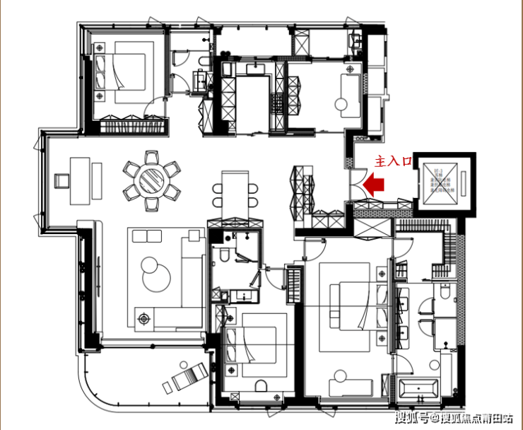 【4】奢华户型设计:85㎡社交化客餐厅、归家礼仪轴线、专梯入户、8.3米超面宽阳台、7米面宽旭格提升推拉门、全套间设计