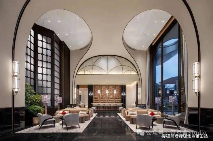 作为空间的迎宾序章,接待大堂注重仪式感,地面铺设着精致巧夺天工的拼花图案,犹如一幅动态的画卷,渐次引领宾客的目光。细腻的花纹与光影错落交织,营造出一种宁静而尊贵的气氛,每一步行走都仿佛是在历史长河中留下的深刻足迹。